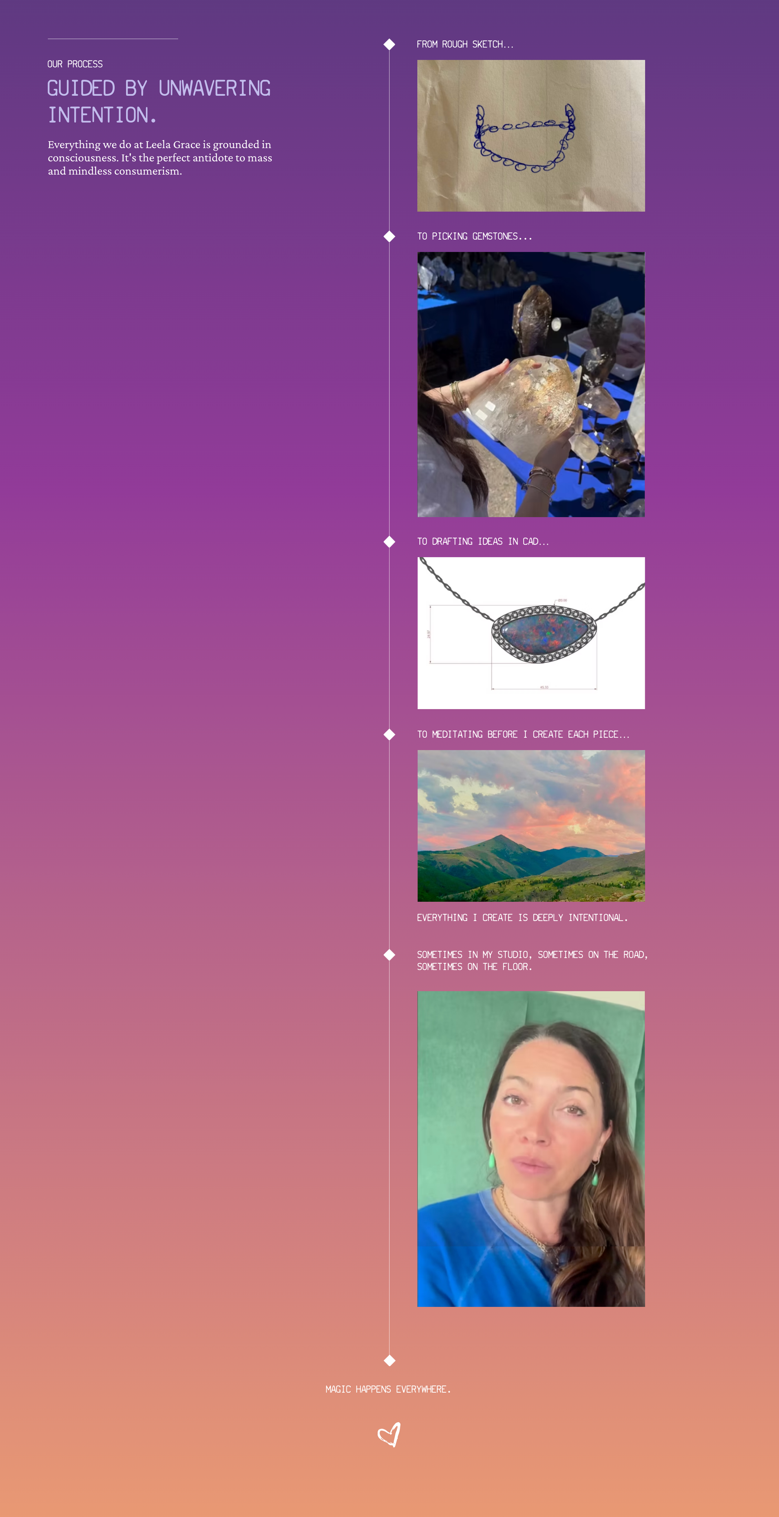 Through intensive research and conversation, we clarified Jennifer’s core values, drafted language to define her differentiators, and developed a brand story that would evolve with the Leela Grace brand for years to come.