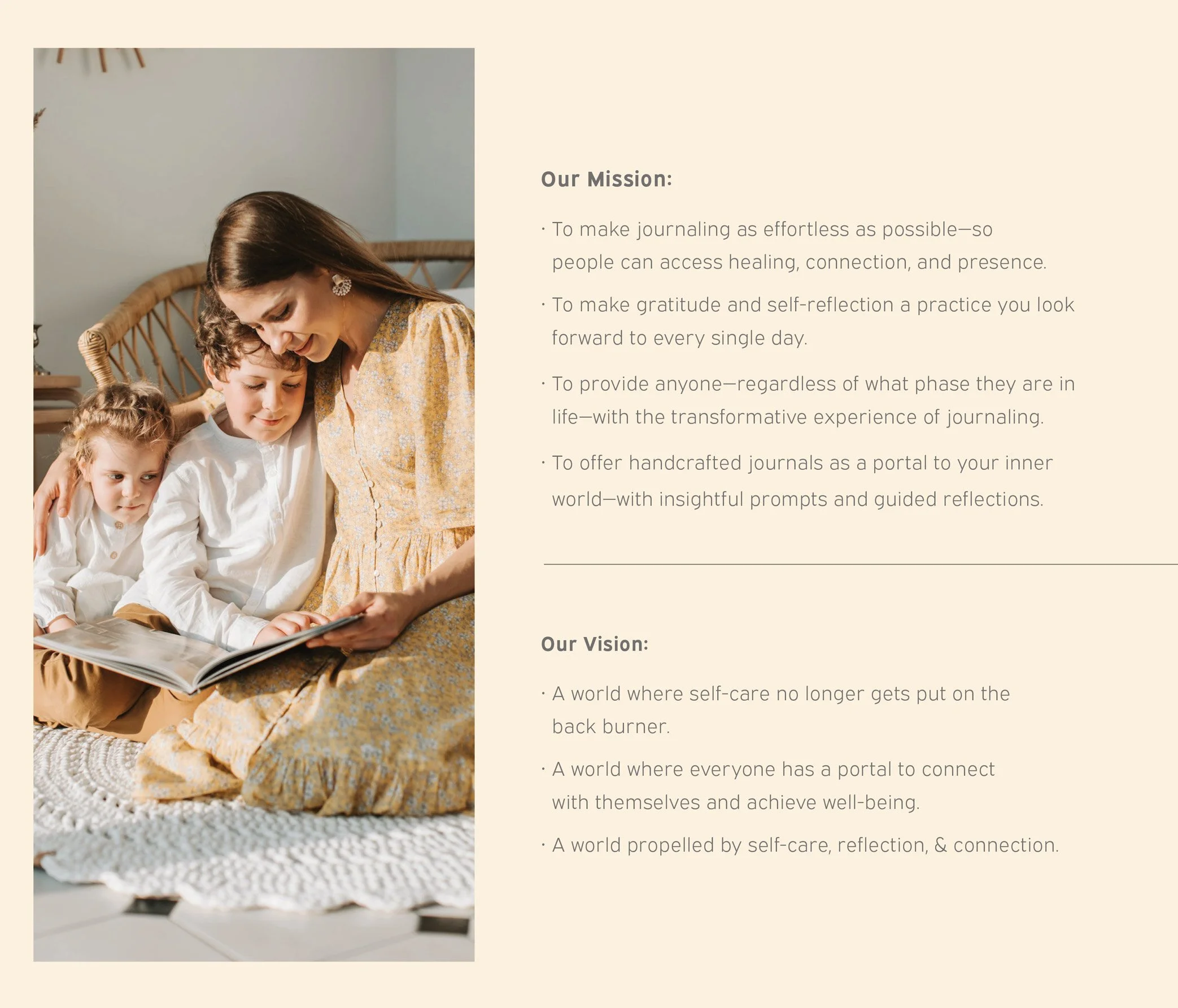 Promptly’s ideal customer believes in the importance of connecting with their inner lives and documenting their experiences with others—through the ritual of journaling. In a world that prioritizes speed and productivity, our ideal customer emphasizes the act of slowing down and valuing the time that they have with their loved ones by documenting it on paper.